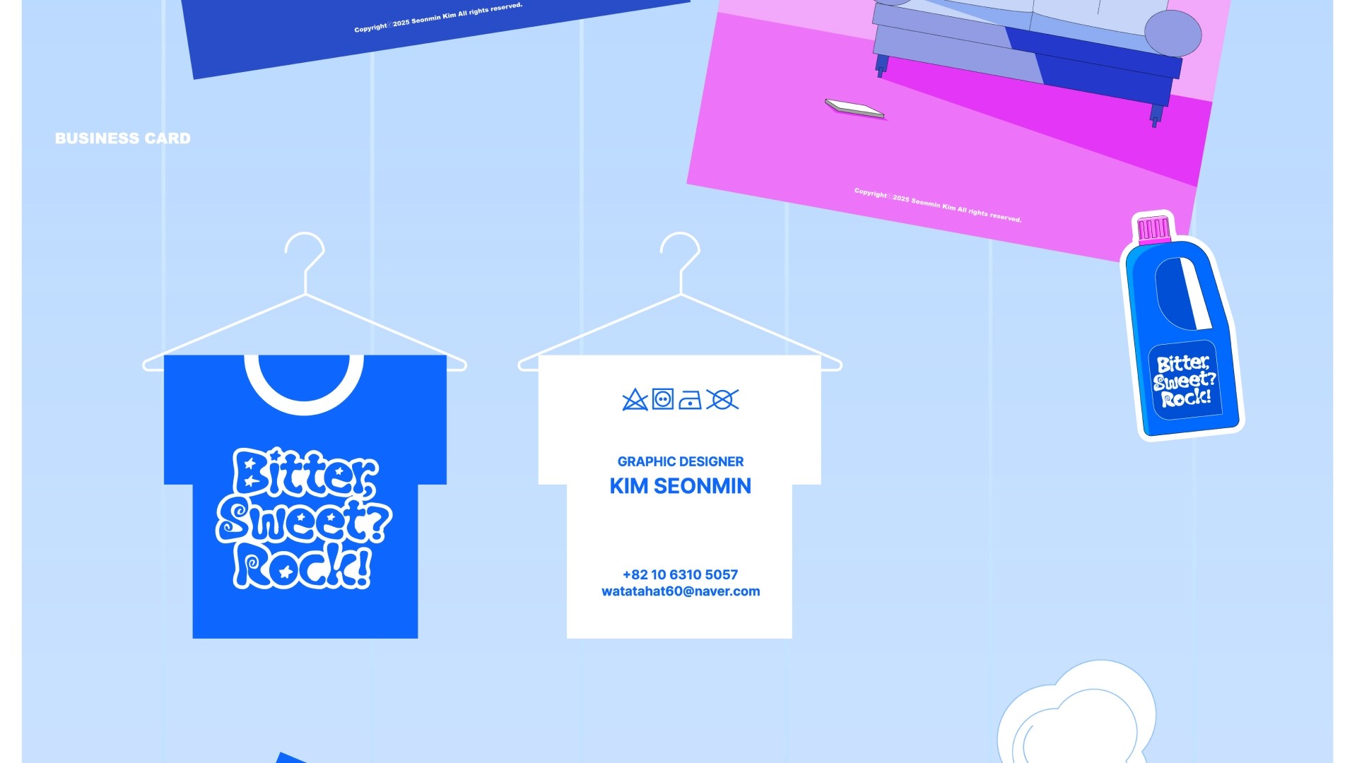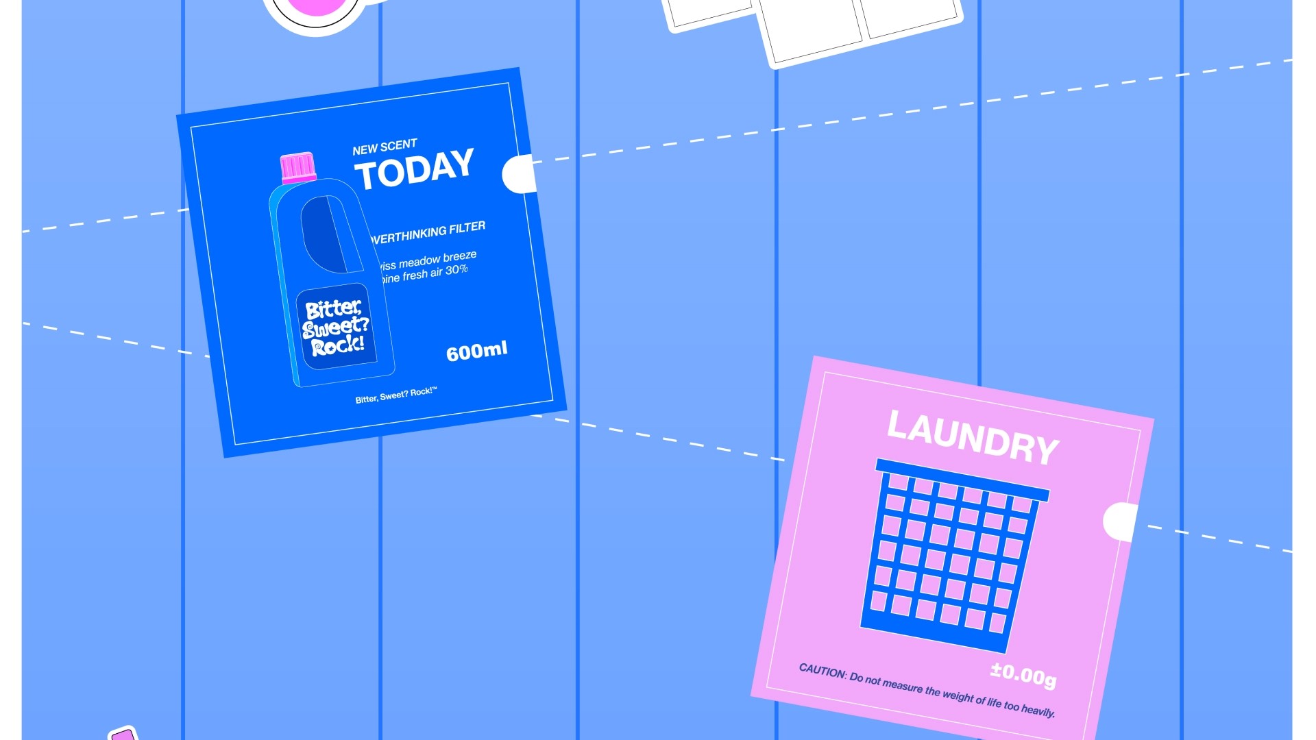 ‘삶은 가까이서 보면 비극, 멀리서 보면 희극’이라는 말이 있다. 이 프로젝트는 산 위 바위의 시선으로 삶을 바라본다면 어떨까 하는 생각에서 출발했다. 가상의 ‘스위스 함유 세제 광고’로 시작된 영상은 도시 사람들의 한숨이 구름이 되어 비로 쏟아지고, 세탁이 시작되며 삶이 휘말리듯 돌아가는 모습을 그린다. 회전하던 드럼통은 우주 속 지구로 변하고, 소음은 멀어지며 삶은 고요해진다. 세탁 종료음과 함께 맑아진 지구는 다시 평화로운 하루로 이어진다. 빌어먹을 세상, 까짓거 스윗하게 살아보자! And take care of your “today.”
