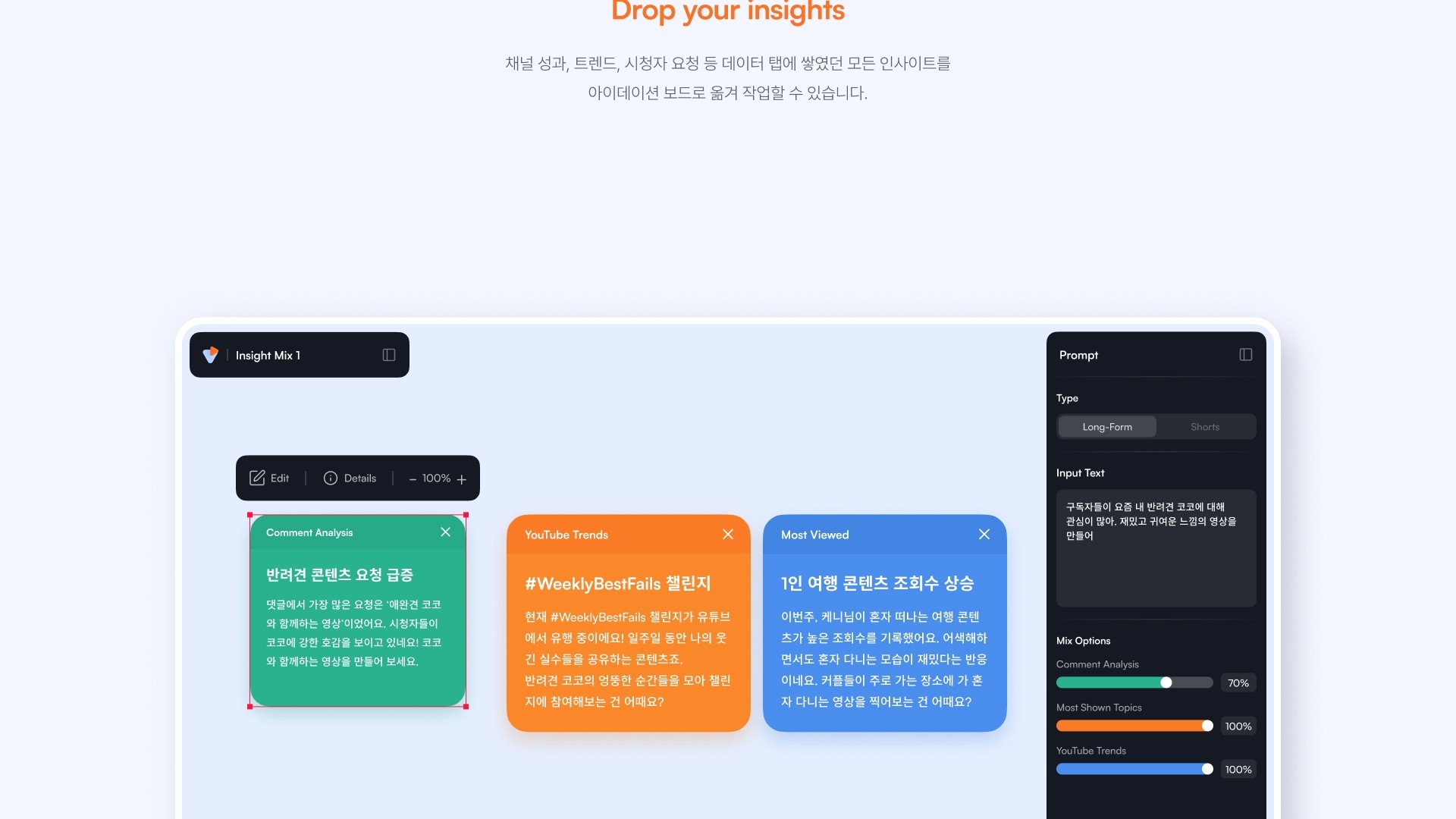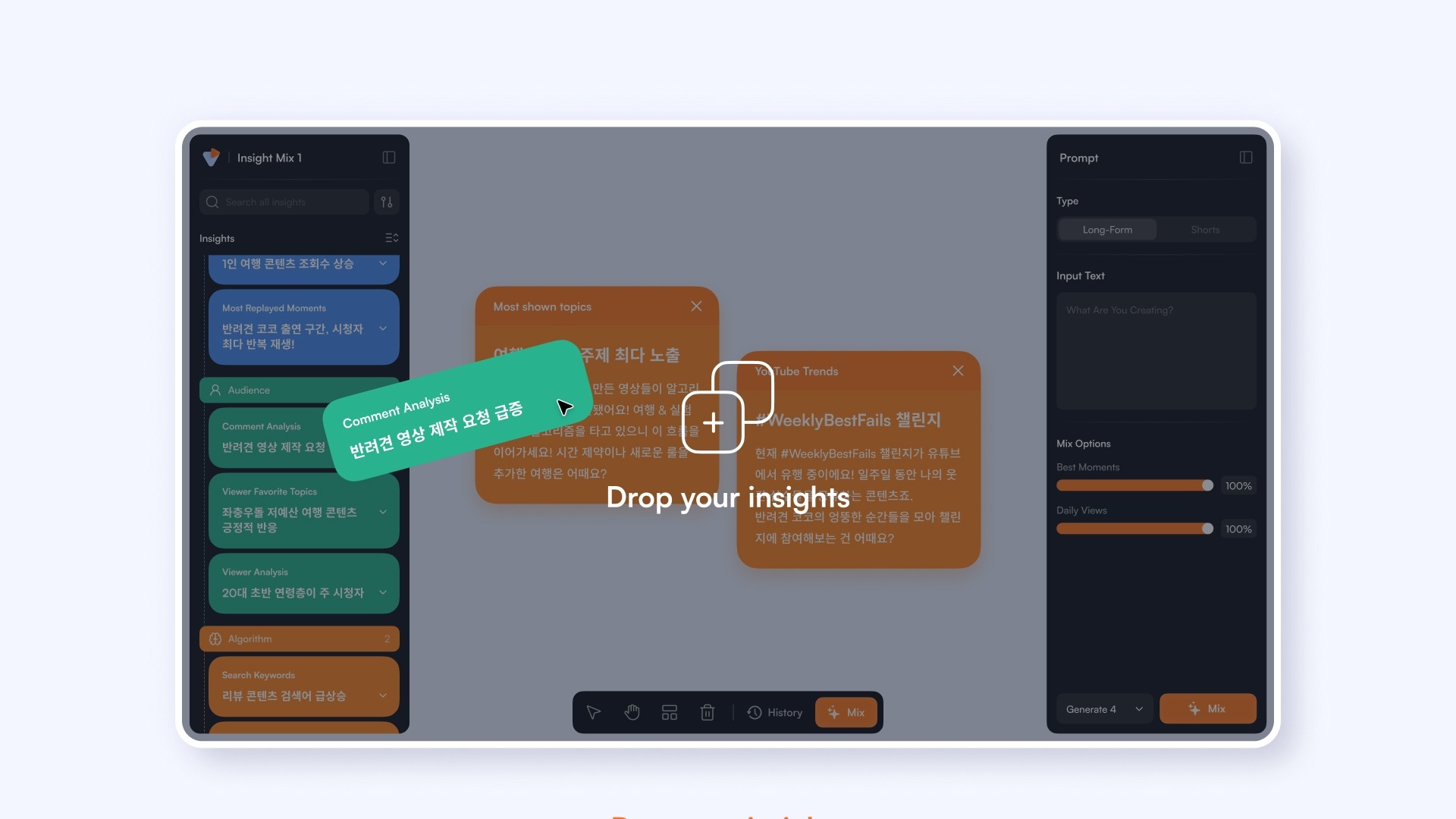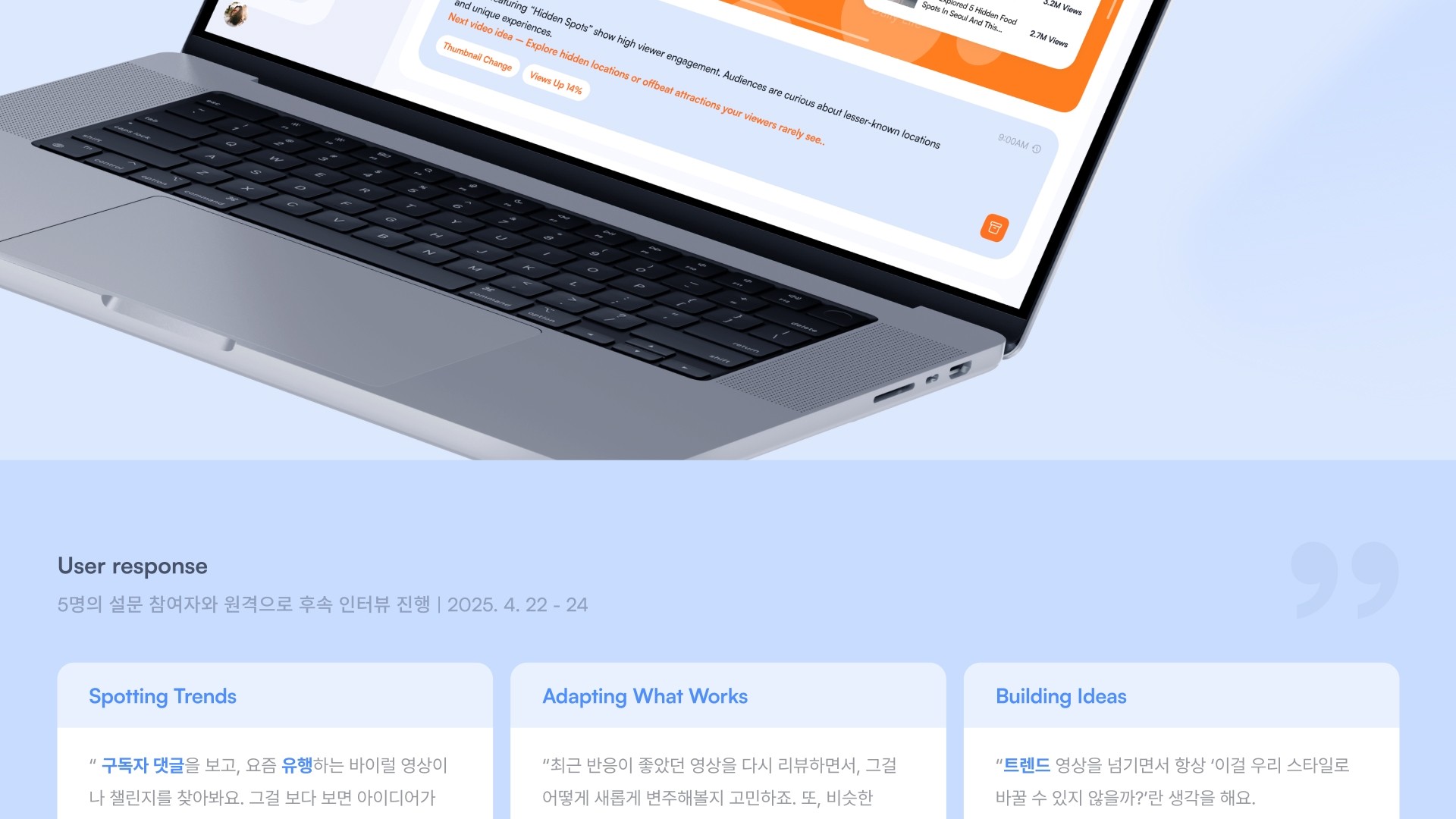 As the creator economy grows, YouTubing has become a legitimate career. Yet existing YouTube analytics tools only provide raw numbers—leaving creators on their own to come up with content ideas. CREKIT bridges this gap between data and creativity. Going beyond simple metrics, CREKIT analyzes what drives audience reactions and delivers actionable insights to guide your content strategy. Experience where data meets inspiration, and discover a new way of working as a creator.