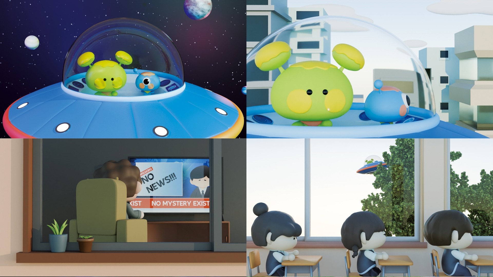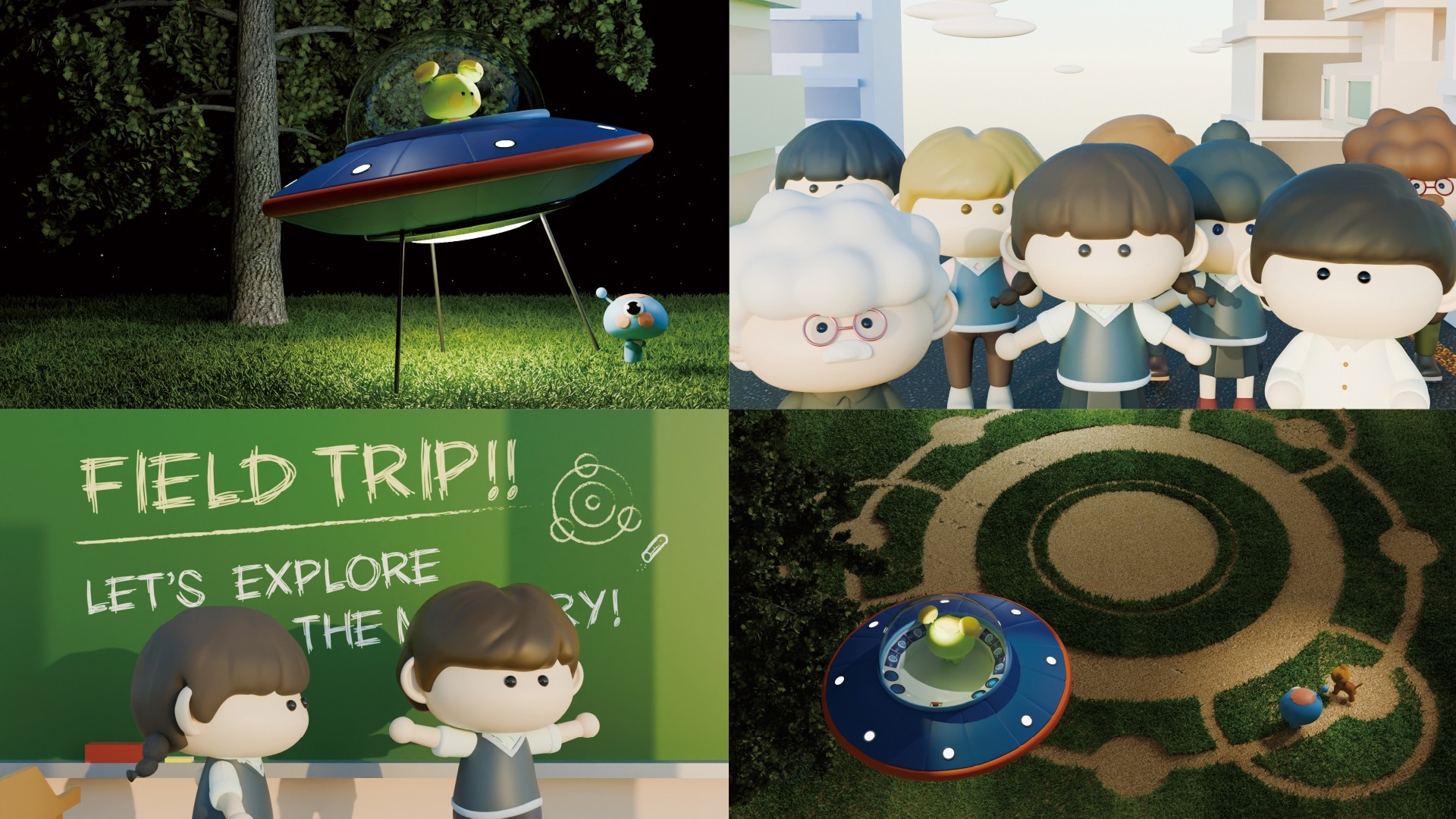 When was the last time you felt curious? "Curiosity" is the driving force behind the growth of not only humans, but all intelligent beings. Sometimes, excessive curiosity can cause unexpected mistakes, but even those mistakes can ultimately become opportunities for new joy and exploration. This animation centers on the events when two curious aliens, Looni and Pico, visiting Earth and accidentally creating the mystery circle. Through the premise that Earth has become the most boring planet, it reflects unmotivated people and conveys a message about “curiosity as the driving force of life.”