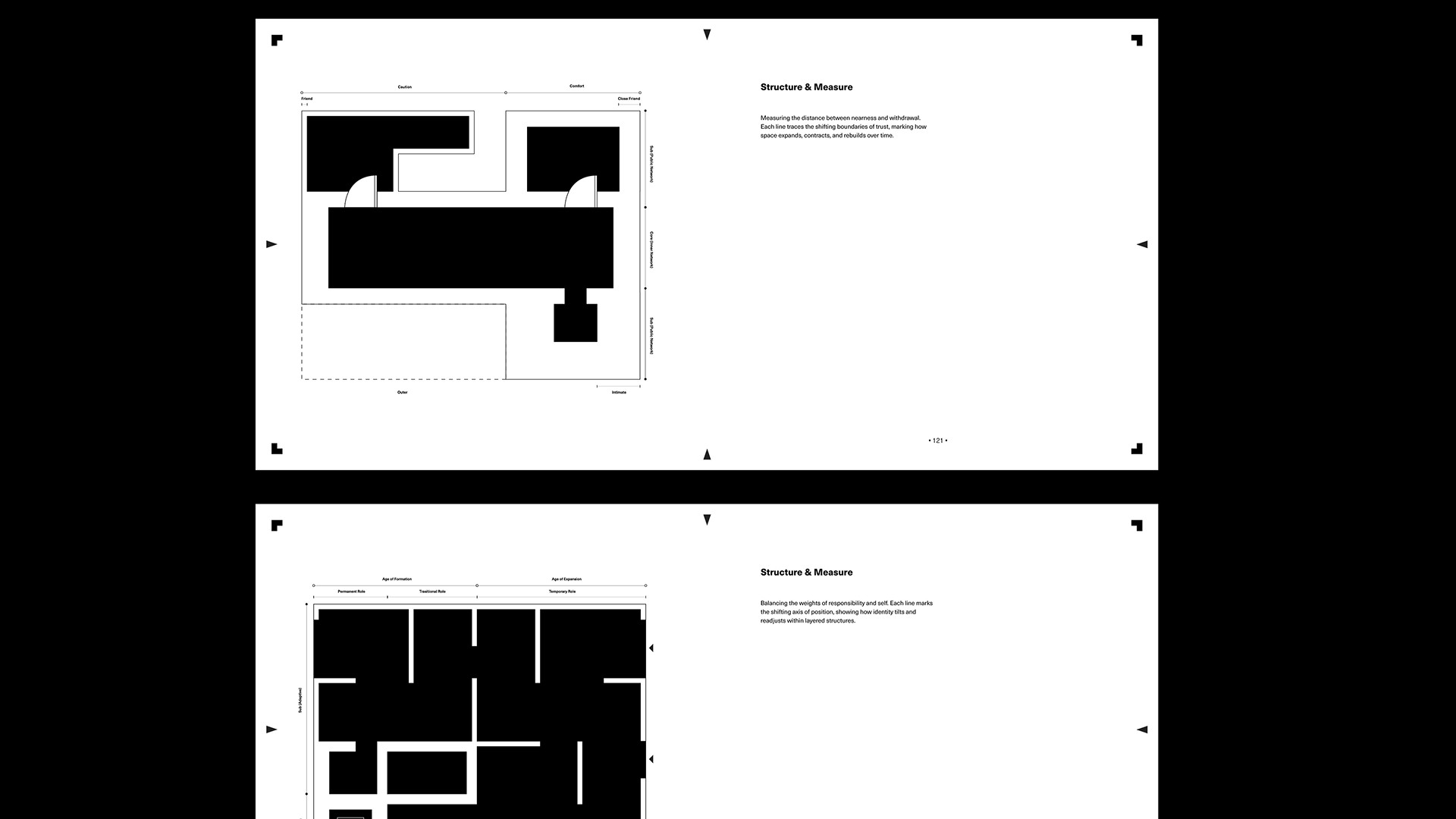 “집에 가고 싶다...” 돌아갈 곳으로서의 집을 떠올린다. 그리고 그 집은 곧 ‘나’이다. 그렇다면 나는 어떤 집일까. 나는 어디로 돌아가고 싶은 걸까. 본 프로젝트는 ‘나’ 자신을 사회 속에 놓인 집으로 가정하고, 그 구조와 형태를 도면과 다이어그램의 언어를 빌려 기록(press)한 뒤 책자로 구성한 작업이다. ‘나’라는 집은 물리적인 집(house)이라기보다, 감정과 기억이 겹쳐진 집(home)에 가깝다. 따라서 집을 공간으로 그려 본 뒤, 삶의 흐름에 따라 변해가는 구조적 모습을 표현해 보았다. 그 집이 곧 (Ho)'me', 즉 나 자신을 담은 집의 모습이다. 모두가 자신이라는 집 (Ho)me 을 한 번쯤 떠올려보길. Home Sweet (Ho)me, How Sweet House!